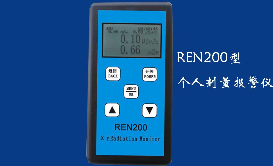 REN200A型X、γ辐射个人剂量当量HP(10)监测仪(简称:个人剂量报警仪)内置高灵敏度盖格计数管为探测器,主要用来监测各种放射性工作场所的X、γ以及硬β射线的辐射,具有响应快,测量范围宽的特点。能显示工作场所的剂量当量率和累积剂量,更换电池时,日期及累积数据能永久保存。可选配RenRiPersonal个人剂量管理软件,该软件可存储多个人的历史数据,能记录日累积、月累积、年累积、辐照时长、计算平均剂量率、扣除或不扣除本底辐射,且以文字和图谱的方式展现数据。广泛应用于核电站、加速器、钢铁、化工、同位素应用、工业X、γ无损探伤、放射医疗、钴源治疗、γ辐照、放射性实验室、核设施周围环境监测等领域中的工作人员进行个人安全防护监测及放射性提示。