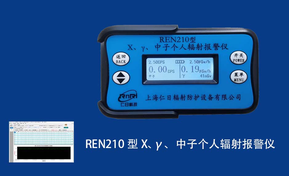 REN200A型X、γ辐射个人剂量当量HP(10)监测仪(简称:个人剂量报警仪)内置高灵敏度盖格计数管为探测器,主要用来监测各种放射性工作场所中个人的X、γ以及硬β射线的辐射,具有响应快,测量范围宽的特点。能显示工作场所的剂量当量率和累积剂量,更换电池时,日期及累积数据能永久保存。可选配RenRiPersonal个人剂量管理软件,该软件可存储多个人的历史数据,能记录日累积、月累积、年累积、辐照时长、计算平均剂量率、扣除或不扣除本底辐射,且以文字和图谱的方式展现数据。广泛应用于核电站、加速器、钢铁、化工、同位素应用、工业X、γ无损探伤、放射医疗、钴源治疗、γ辐照、放射性实验室、核设施周围环境监测等领域中的工作人员进行个人安全防护监测及放射性提